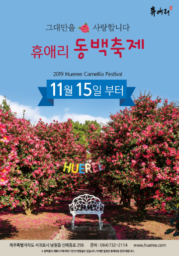 휴애리동백축제는 11월 15일부터 열리는 동백축제로서 휴애리공원에서 정성스럽게 키운 꽃들을 동백정원과 동백올레길 등 공원 곳곳에서 만나볼수 있으며 12월이 동백꽃이 더욱 풍성하게 피어나 아름다운 동배꽃을 만나볼수 잇는곳입니다.