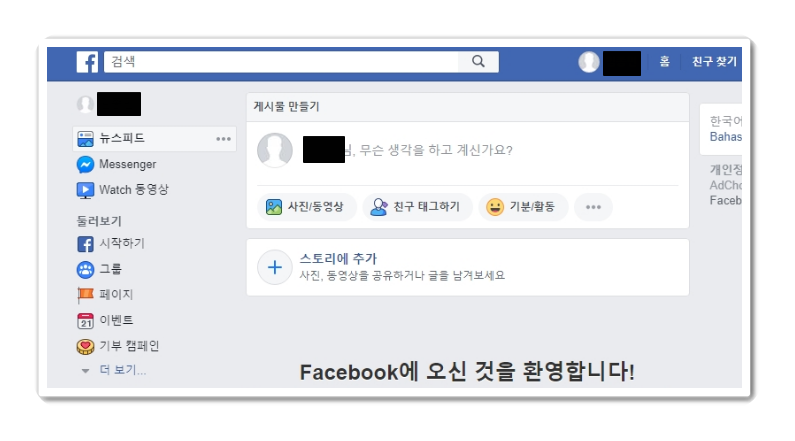 첫번째로, 페이스북 방문자 확인을 위해서 페이스북 홈페이지에 접속해서 로그인을 해주시면됩니다. 스마트폰이 아닌 pc로만 확인이 가능하기 때문에 pc를 통해 로그인을 해주세요.