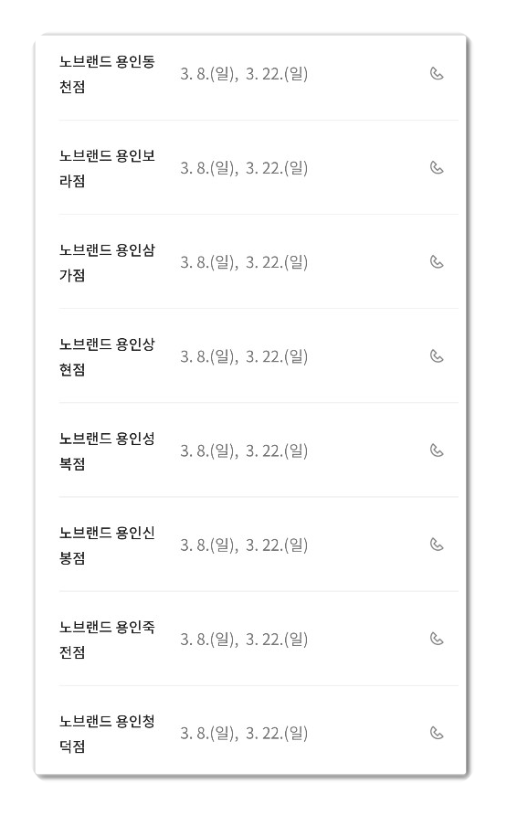 노브랜드 용인보라, 노브랜드 용인삼가, 노브랜드 용인상현, 노브랜드 용인성복,