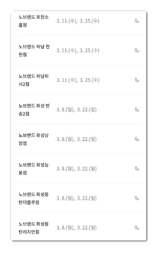 노브랜드 평택청북, 노브랜드 화성반송2, 노브랜드 화성남양, 노브랜드 화성능동,