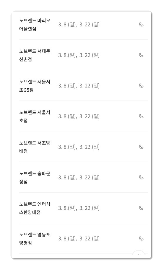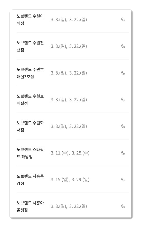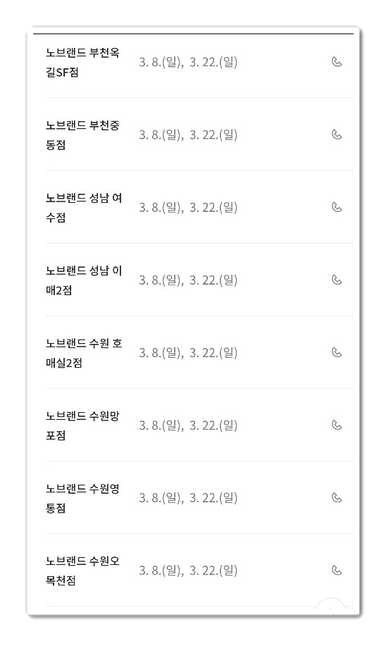 노브랜드 수원화서, 노브랜드 스타필드하남, 노브랜드 시흥목감, 노브랜드 시흥아울렛,