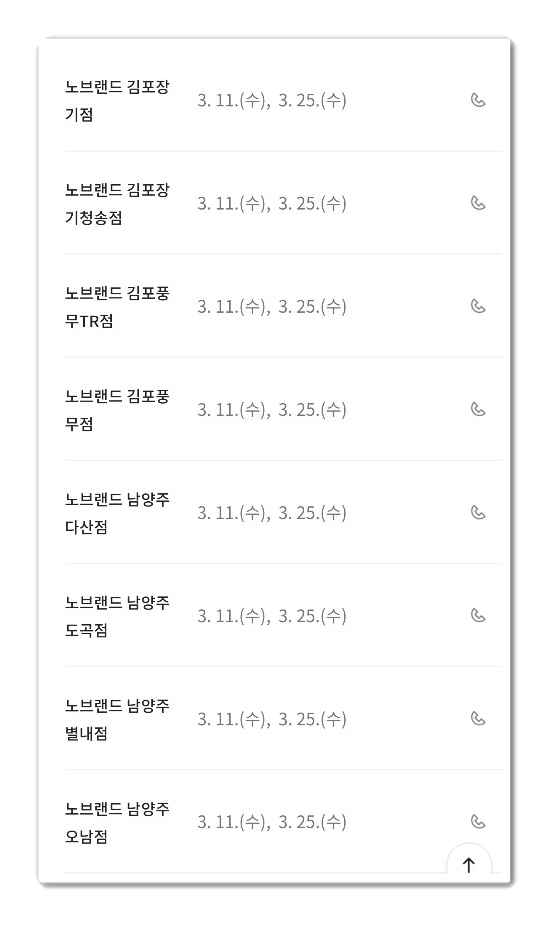 노브랜드 고양행신중앙, 노브랜드 구리갈매, 노브랜드 구리인창, 노브랜드 김포운양,