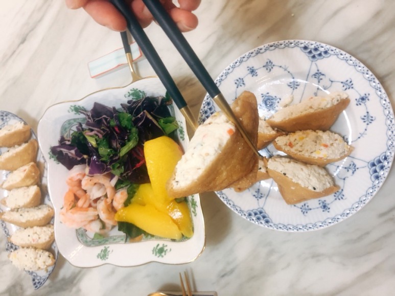 그래서 다음날 스케줄을 위해 치핑 데이를 마치고 소개한 다이어트 식단인 [두부 유부초밥]이 나왔답니다.