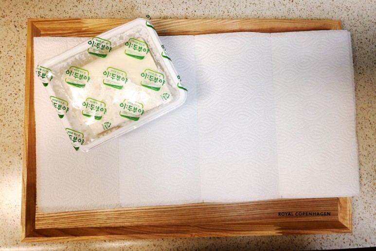 이렇게 재료를 준비해두고, 먼저 두부의 물기를 많이 제거해 주어야 합니다.