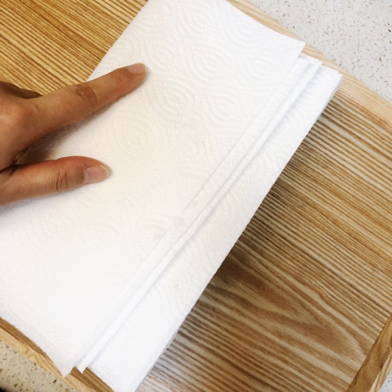 밑에 키친타월을 깔고 쭉쭉 몇 번 눌러주세요!
