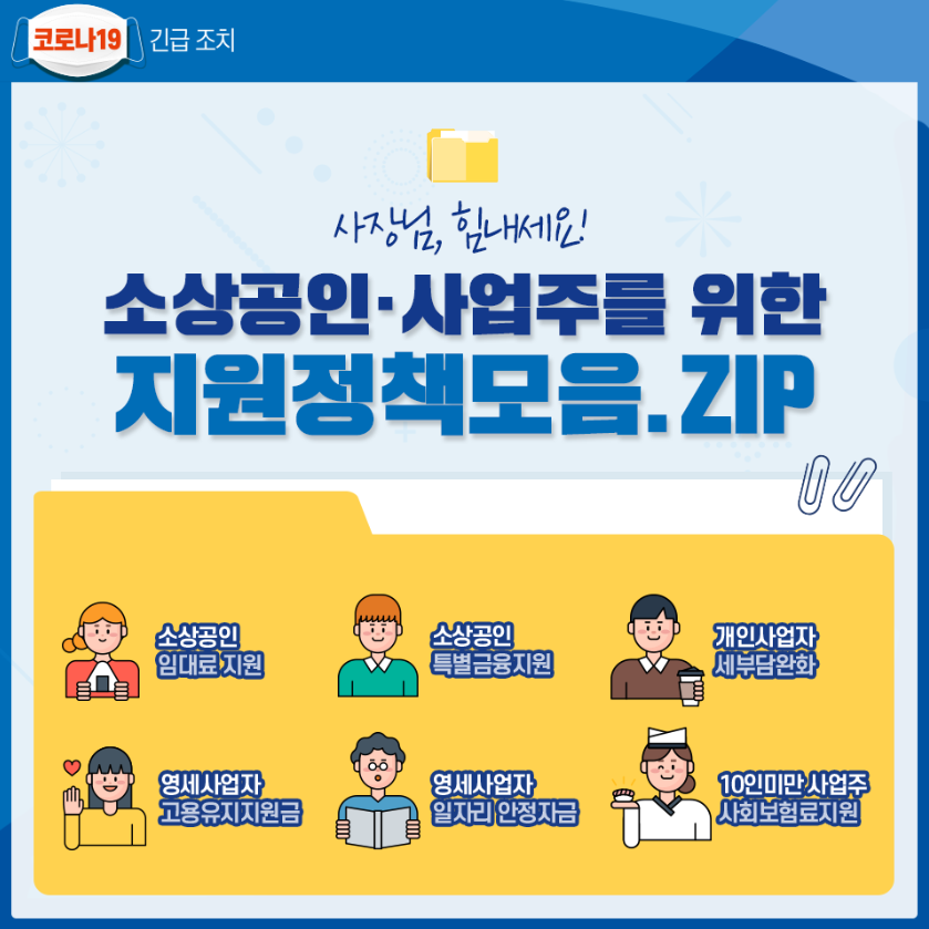 소상공인 임대료지원, 소상공인 특별금융지원, 개인사업자 세부담완화, 영세사업자 고용유지지원금, 영세사업자일자리 안정지급, 10인미만 사업주 사회보험료지원에 대해서 알아 보겠습니다.