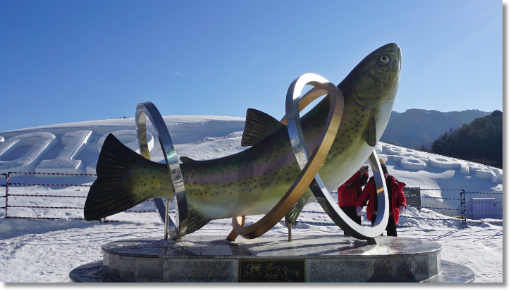 우리나라 선조들의 삶을 축제로 승화시켜 눈과 얼음, 송어가 함께하는 겨울이야기라는 주제로 매년 겨울마다 송어축제의 장이 펼쳐집니다. 송어낚시와 썰매체험, 그리고 찐빵만들기 등 다양한 체험 프로그램과 함께 진정한 겨울 축제의 즐거움을 만끽할 수 있습니다. 송어는 연어과에 속하는 소하형 어종으로 한국의 동해와 동해로 흐르는 일부 하천에 분포하며, 북한, 일본, 연해주 등지에도 분포합니다. 특히 평창군은 국내 최대의 송어 양식지이며, 평창의 맑은 물에서 자란 송어는 부드럽고 쫄깃쫄깃한 식감이 일품입니다.