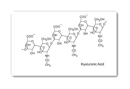 피부와 연골 같은 결합 조직에 가장 높은 농도로 존재하는 화합물입니다. 히알루론산은 관절액의 주요 구성물로서 압축력에 저항하는 윤활제 역할을 해줍니다. 또한 히알루론산은 각종 안과 수술의 보조제, 관절 내 주사제, 인공눈물, 상처치유 등의 목적으로 사용되는 약물이며, 자신의 무게에 300~1000배에 해당하는 수분을 함유할 수 있는 다당류의 일종으로 보습작용이 뛰어납니다.
