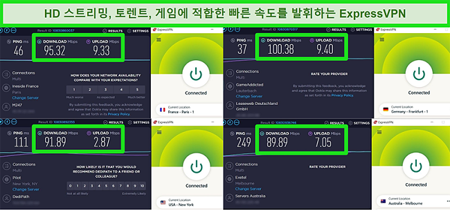 넷플릭스, 디즈니 플러스, 훌루, HBO 맥스 전용 서버를 이용하면 스트리밍 서비스를 우회하고 고화질로 콘텐츠를 감상할 수 있습니다. 테스트 결과 외국인 동료도 비슷한 우회 성능을 경험한 것으로 나타났습니다. 또한 전용 서버의 속도가 UHD 화질로 콘텐츠를 감상할 수 있을 정도로 빠르다는 것도 장점입니다.