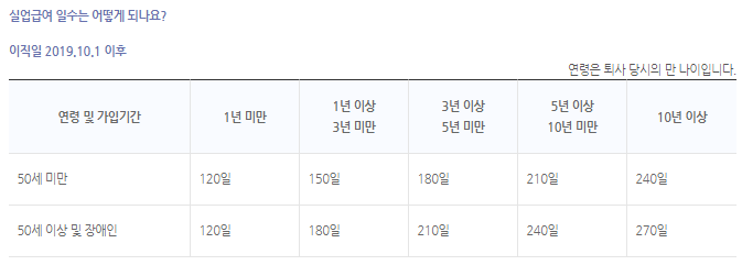 실업급여 수급기간은 연령 및 가입기간에 따라 조금씩 차이가 있습니다. 최소 4개월(120일)부터 최대 9개월(270일)이니 확인하시어 착오 없으시기 바랍니다.