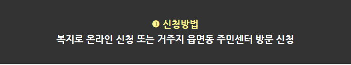 복지로 홈페이지(바로가기)에서 온라인 신청 또는 거주기 읍면동 주민센터에서 신청이 가능 합니다.