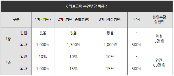 - 급여대상 항목에 대한 의료비 중, 수급자 본인 부담 금액을 제외한 전액을 지원합니다.
