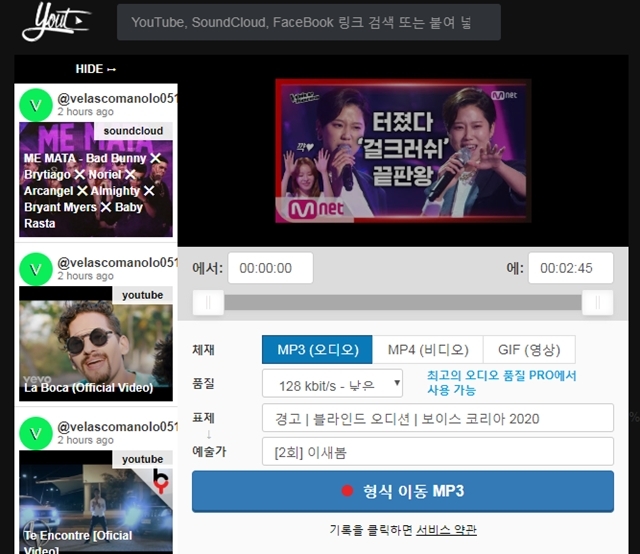 - FaceBook, SoundCloud 영상 변환 지원