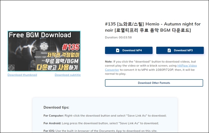 - 다운로드시 redirection 페이지로 넘어가나 페이지 허용을 불허해도 MP3 다운로드는 가능