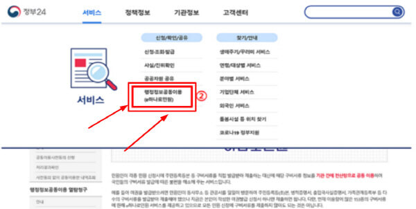 2. 서비스 및 행정 정보 공동이용 탭 선택