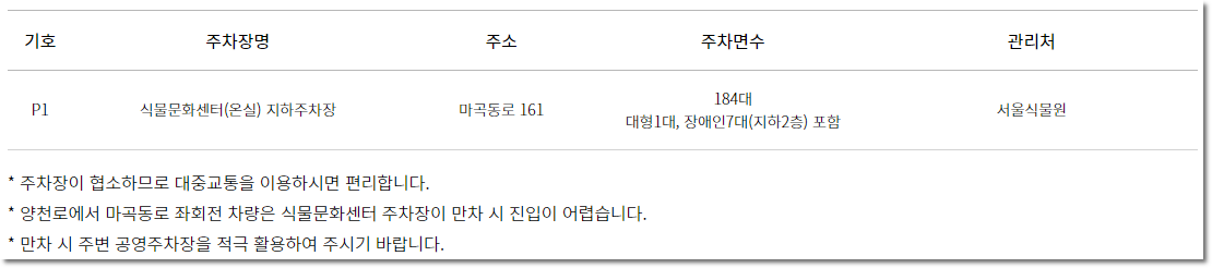 - 사전예약 방법 : 서울식물원 홈페이지(http://botanicpark.seoul.go.kr/)를 통해 서울시 공공 서비스예약페이지에서 예약가능