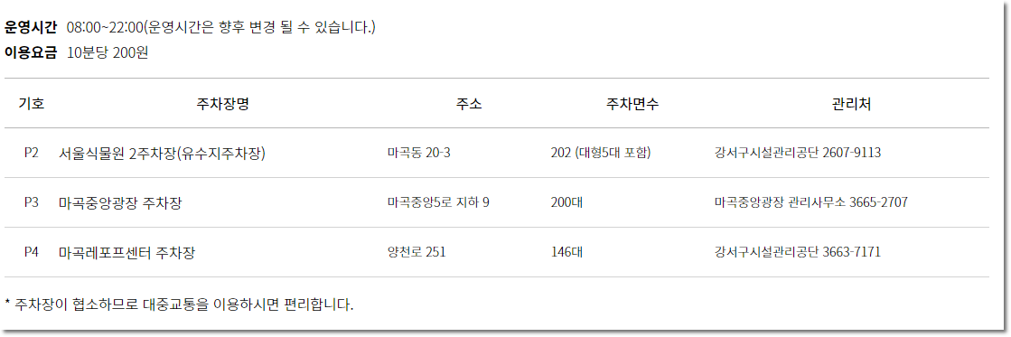 - 이용요금10분당 200원(승용차), 10분당 400원(중형차-승합차), 10분당 600원(대형차-16인승 이상)