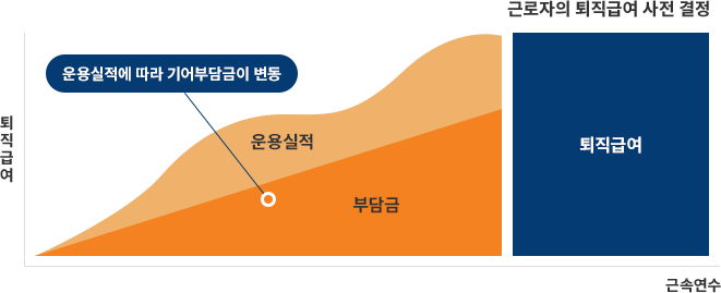DB적립금 운용 책임은 회사에 있으며, 납입해야 하는 부담금의 수준은 운용실적에 따라 달라집니다.