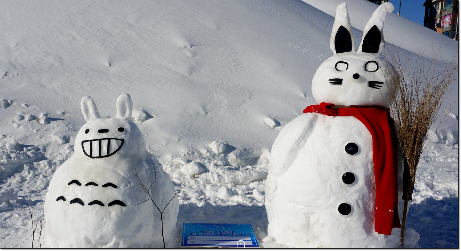 - 대관령 눈꽃축제에는 다양한 크기와 모양의 눈조각들이 마련되어 있고, 대관령 주민들이 직접 만든 눈사람들도 마련되어 있습니다. 곳곳에는 포토존들이 마련되어 잇으니 포토존에서 인생샷을 남겨보는것도 좋습니다.