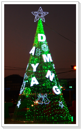 담양 중앙공원에는 기본에 설치된 벤치에 감성문구를 담은 스토리텔링형 경관조명과 플라스틱 박스를 재활용한 대형산타, 수목조명 트리, 크리스마스카트 포토존, 등 성탄 느낌 가득한 정원으로 조성하였고, 마켓과 버스킹 공연이 진행됩니다. 메타프로방스에서는 진입로 정면과 프로방스 내부에 대형 크리스마스 트리를 설치하고 곳곳에 산타조형물, 대형트리 터널, 사랑의 열쇠길이 관광객을 맞이하고 각 상가도 상가의 특색을 살린 다채로운 경관 조명을 이국적인 분위기에 맞게 꾸며 거리를 수놓았습니다.