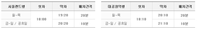 [서울랜드 야간개장 셔틀버스 운영시간]