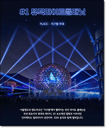 내용 : 아름다운 음악과 한 편의 영화같은 3D레이저 맵핑쇼가 어우러진 라이트닝 쇼