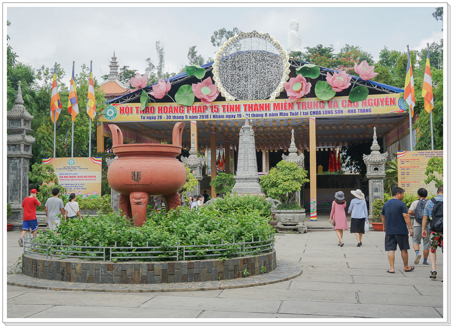 - 롱선사는 1889년에 건축된 사찰입니다. 프랑스 식민지 시절 반 프랑스 운동을 주도하던 승려에 의해 세워졌습니다. 롱선사는 나트랑의 남쪽을 지켜준다고 합니다. 여신은 악을 막고, 부처님은 복을 가져다 준다고 믿고 있습니다. 몇번의 보수 공사를 거쳐 지금의 모습으로 남아있다고합니다. 본당 안에는 태국으로부터 선물받은 연꽃에 둘러 싸여있는 불상이 있고, 본당 오른편에 152개의 계단을 오르면 14m 높이의 대형 불상을 만나 볼수 있습니다.
