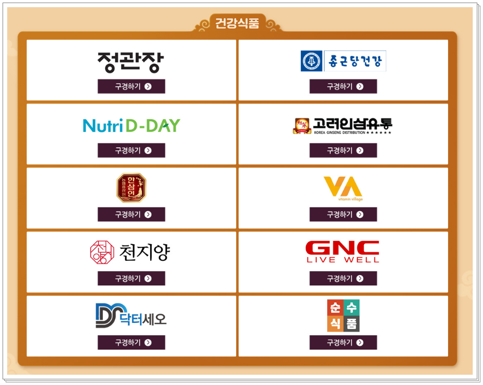건강식품의 대표적인 브랜들을 모아봤습니다. 제일 인기가 좋은 정관장과 종근당입니다. 이 브랜드회사에 대표적인 건강식품으로 홍삼이 있습니다. 요즘은 나이드신분 뿐아니라 젊은층에서도 인기가 많습니다. 건강을 챙기고 앉아서 하는 일들이 많기 때문에 운동할 시간이 많이 모자른분들을 위해 면역력과 피로개선, 기억력 개선, 혈소판 응집억제를 통한 혈액흐름, 항산화 등 도움을 많이 줍니다. 많은분들이 건강식품으로 선물줍니다.