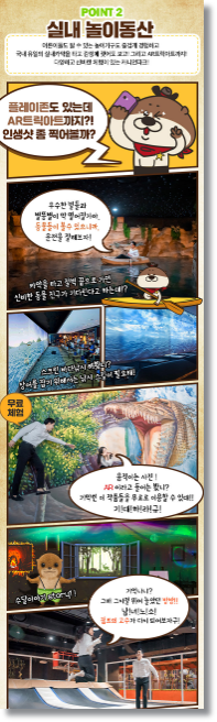 어린 아이들에게는 살아있는 교육의 장으로써 추운 겨울에는 따뜻하게 즐길 수 있는 실내 데이트장소가 될수 있으며, 가족들에게는 추억을 선사할 실내 동물원 캐니언파크는 단순한 실내동물원이 아닌 복합테마파크입니다.