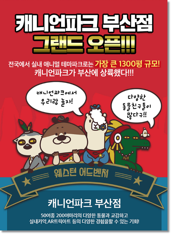 대한민국 대표 관강지 부산에서 실내 애니멀 테마파크 캐니언 파크가 오픈합니다. 대한민국 전국 최대규모 약 1,300평 대로 알려져 주목을 받고 있습니다. 부산 최초로 알락꼬리여우원숭이부터 왕부리새 토코투칸, 악어와 박쥐까지 수십여종에 수백마리의 동물들과 교감할 수 있습니다. 실내 동물원 캐니언 파크는 단순히 동물을 살펴보는 곳이 아니라 더 나아가 일종의 실내 관광지로서의 역할을 합니다.