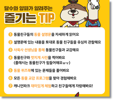 동물들을 보고 만지고 즐기며 엑티브한 탈것으로 무장했기 때문입니다. 특히 캐니언 파크는 카약, AR 트릭아트, 스크린 낚시, 전문식당, VR 체험존, 대형 놀이 시설, 아프리카 토속품 전시존, 식물원 컨셉의 베이커리 카페 등 다양한 즐길 거리가 제공된다고 합니다. 단순히 동물을 보는 것이 아니라 남녀노소 어른들이나 연인들도 함께 즐길 거리를 풍성히 준비했습니다.