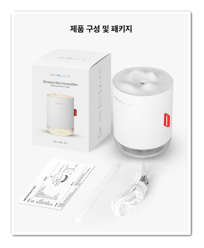 안전하게 사용할 수 있도록 수위감지 센서를 탑재해 물의 양이 부족할 경우 램프가 3회 깜박이고 자동으로 전원이 꺼지므로 안전하게 사용할수 있습니다. 충전도 마이크로 5핀 케이블로 간편 충전이 가능합니다.