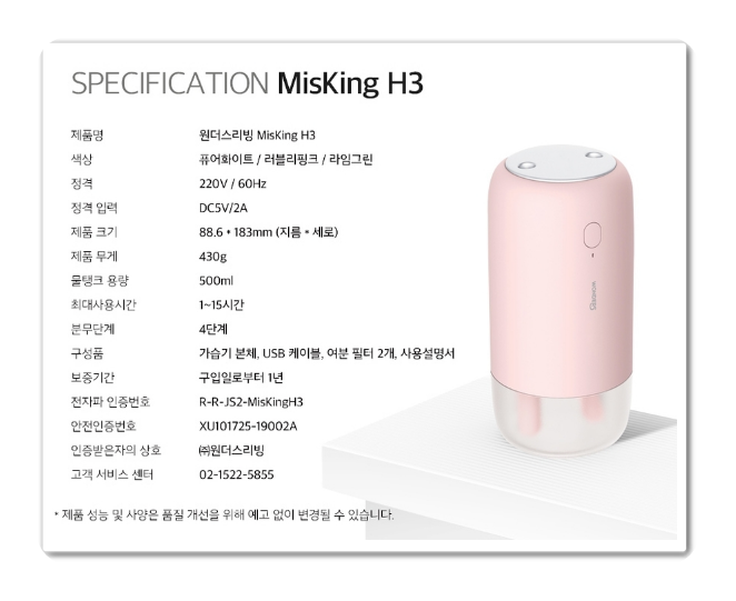 ● 가습기 추천 1순위 : 원더스리빙 미스킹 H3