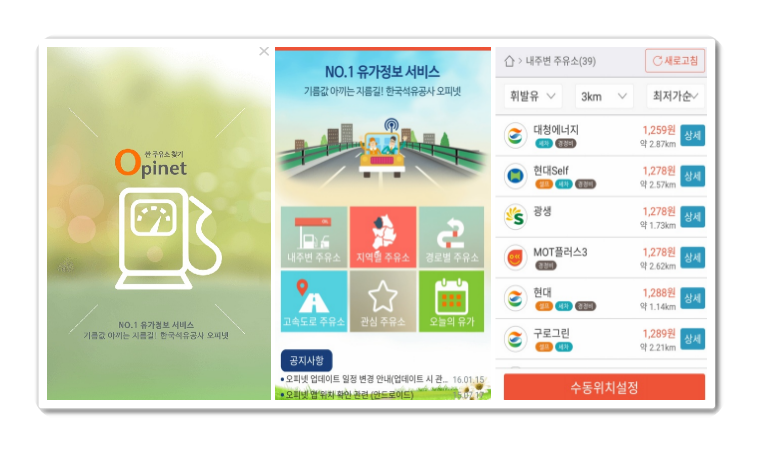 - 귀성길을 떠나기전에 자동차 기름을 채우는것도 빼놓을수 없습니다. 평소보다 많은 양의 기름을 넣기에 가격이 저렴한 주유소를 찾아 출발전에 미리 주유를 한다면 경제적으로도 좋습니다. 또한, 고향갔다가 오는길에도 기름이 모자를수 있기때문에 내 주변에 있는 주유소의 위치를 알려주기 때문에 잘 모르는 고향동네에도 사용하기 좋습니다.