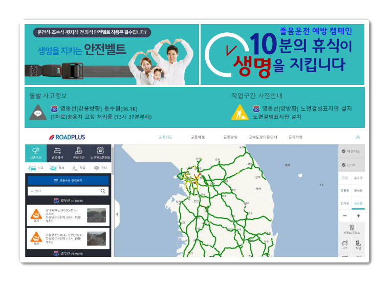 - 이동 하기 전에 온라인에서 설날 교통 상황을 한눈으로 확인할수 있습니다. 실시간 고속도로 교통정보도 바로 확인할수 있고 사고나 공사 구간도 모두 안내되어 볼수 있습니다. 실시간으로 주요 도시 간 예상 시간과 교통방송, 휴게소 등의 교통 정보가 많이 담겨 있습니다.